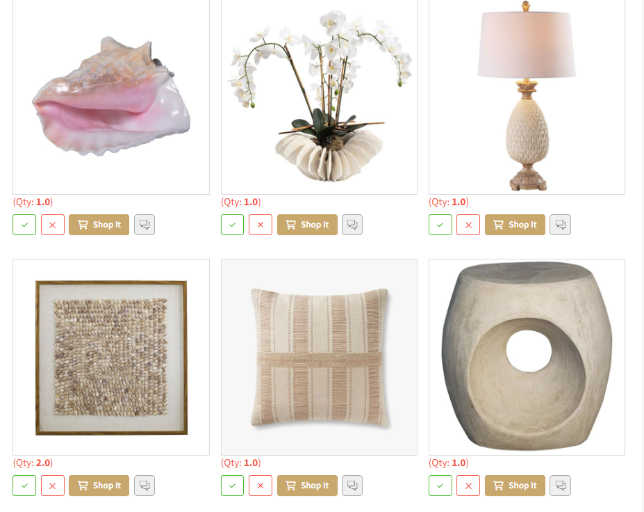 Concept vision boards with wall coverings and/or colors, window treatments, decor, furnishings, sources, specifications and shopping links, along with a detailed install guide are created based on your preferences and package.